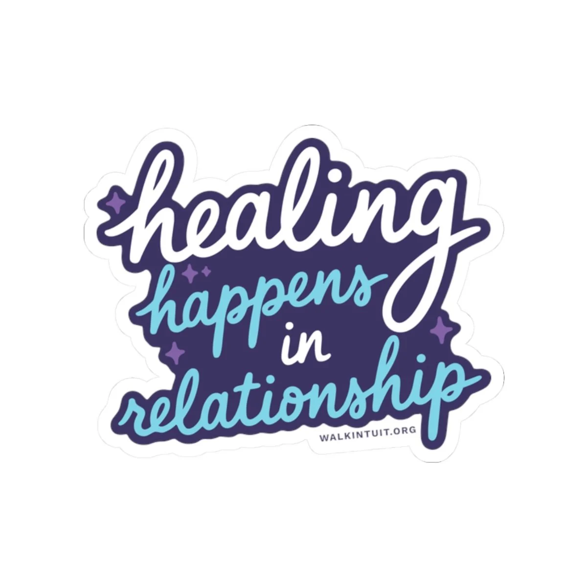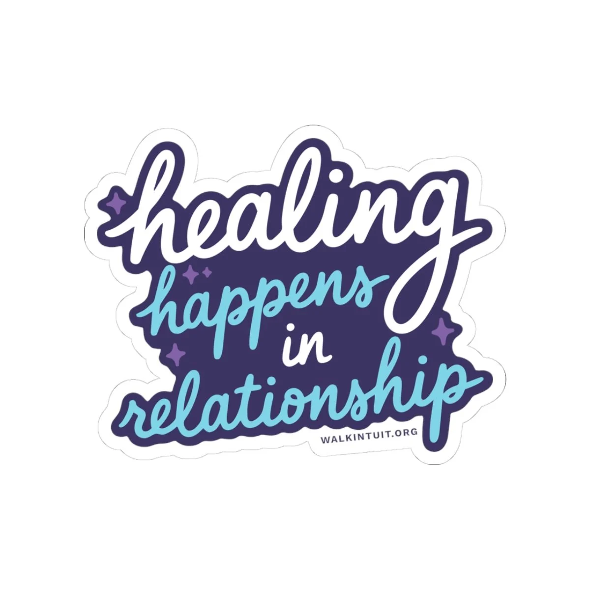 This glossy sticker shares the reminder: “Healing Happens In Relationship.” The vibrant print pops against a clean white or transparent outline, adding gentle color and meaning to laptops, journals, water bottles (indoor use), and more. It applies smoothly with no bubbles and holds fast thanks to a permanent acrylic adhesive on durable vinyl. Use it as a quiet reminder on your gear or in shared spaces to spark gentle conversations about growth and connection.